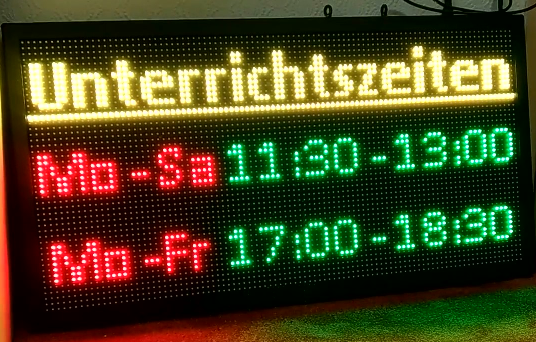 Zu empfehlen sind hierzu eher die LED-Anzeigesysteme für den Aussenbereich. | | | |